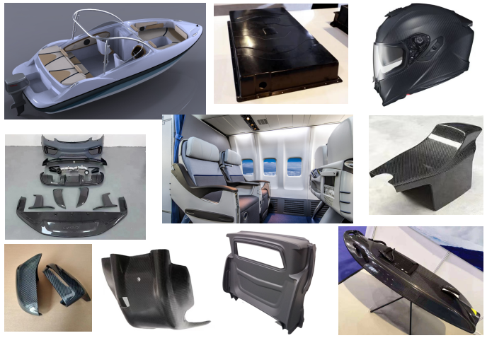 Materiale compositoS: fibra di carbonio (PCM/RTM/SMC/LFT, ecc.), fibra di vetro, carbonio/carbonio, ecc.;